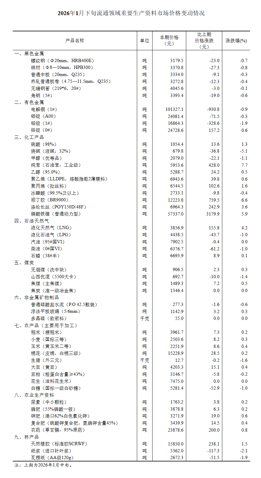 據(jù)對(duì)全國流通領(lǐng)域9大類50種重要生產(chǎn)資料市場(chǎng)價(jià)格的監(jiān)測(cè)顯示,2026年1月下旬與1月中旬相比,25種產(chǎn)品價(jià)格上漲,21種下降,4種持平。